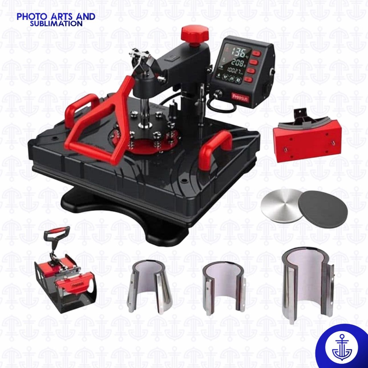 Potencia y Versatilidad en Un Solo Equipo El Combo 8 en 1 P8100 es una estación multifuncional de sublimación que ofrece un rendimiento confiable y adaptable. Con una base térmica de 29 x 38 cm y 7 resistencias intercambiables, este modelo está diseñado para cubrir un amplio rango de productos personalizados: camisetas, mugs, gorras, platos, termos y más.